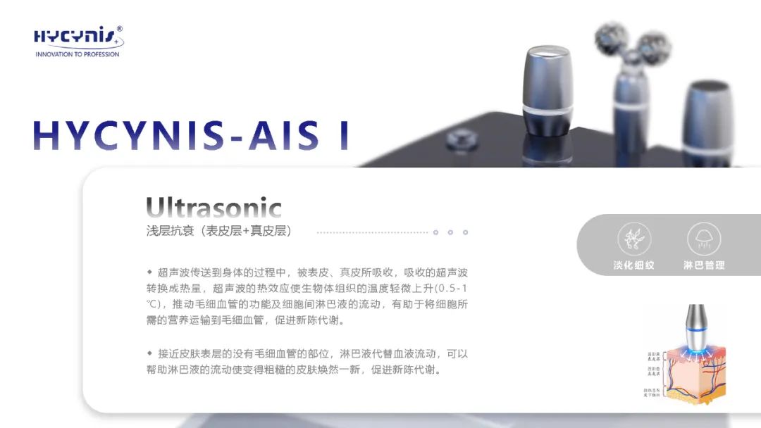 HYCYNIS - AISⅠ为HYCYNIS仪器,属于入门级别抗衰仪器,无专属台车,有高清触控屏幕;